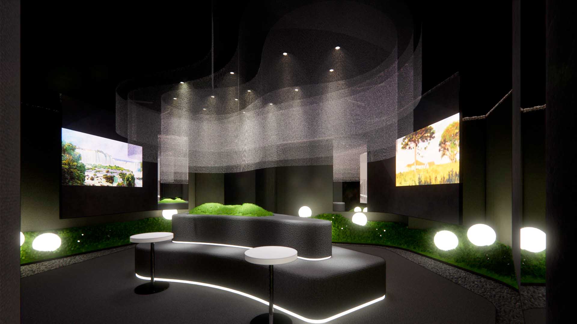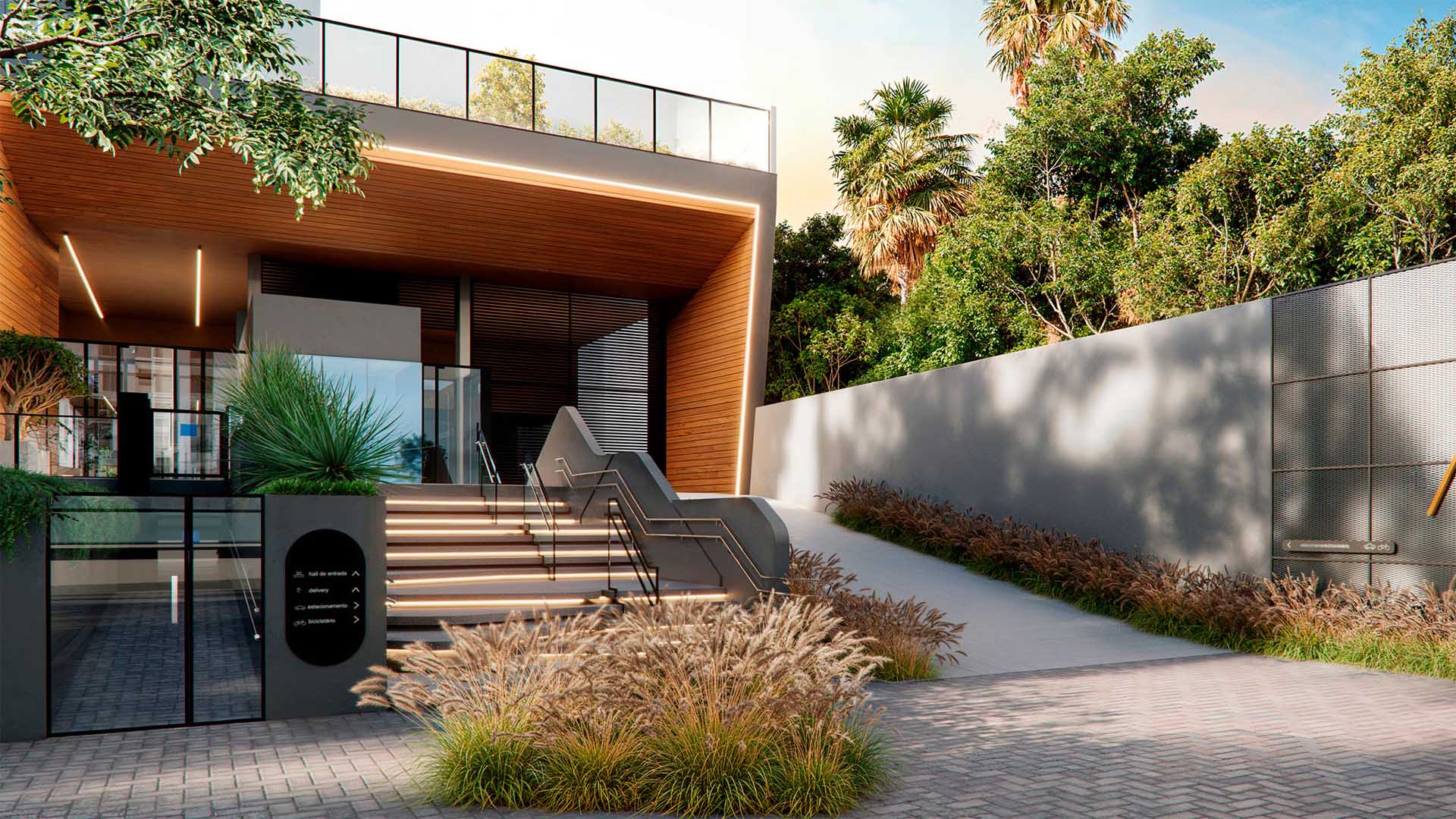 plano vertical convertido em plataforma de experiência viva do empreendimento e/ ou da marca, a partir de interações visuais, físicas em diferentes dimensões sensoriais.