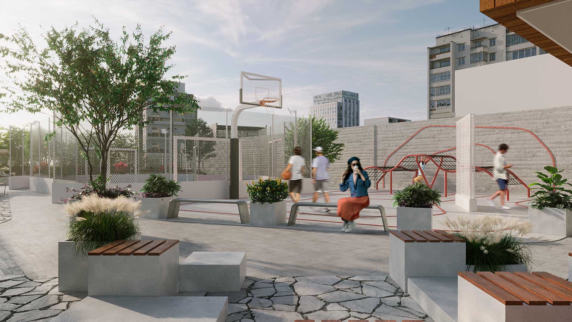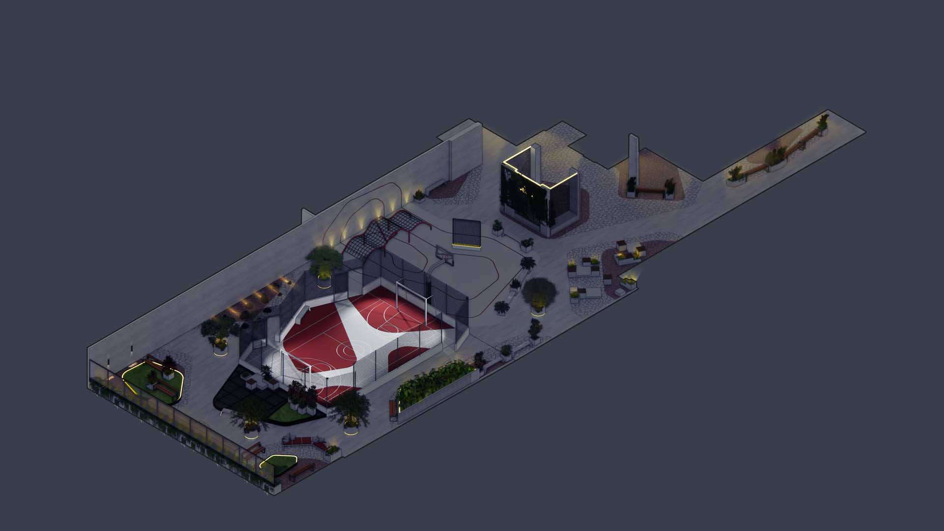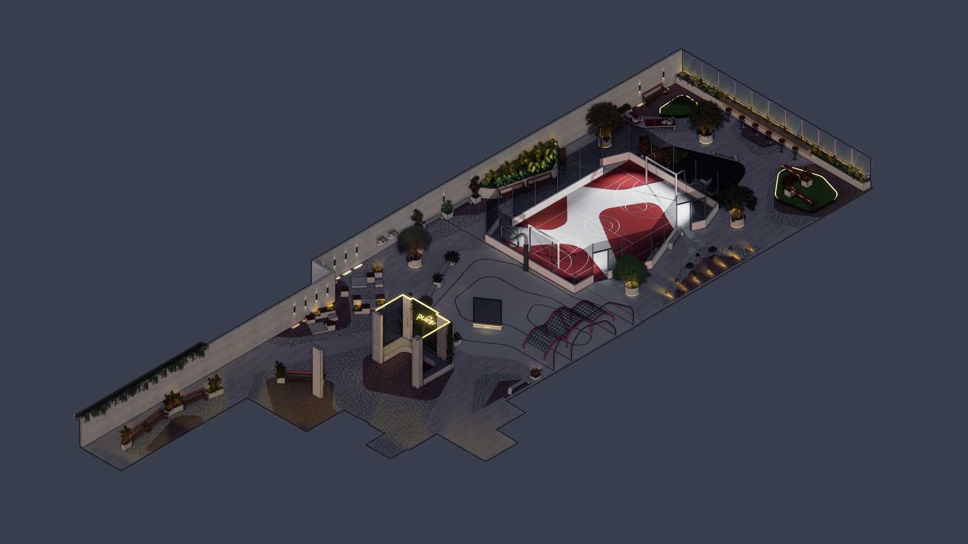 Localizado no Água Verde, um dos bairros mais desejados de Curitiba, o Pulse surge como um convite a um lifestyle urbano, vibrante e ativo. Desde os primeiros estudos, o conceito de “vida urbana” guiou cada decisão projetual. A intenção foi criar um espaço que refletisse a intensidade da cidade, mas que também oferecesse momentos de pausa, revelando um paisagismo que acompanha o ritmo pulsante de quem habita e circula pelo empreendimento. O partido nasceu da quadra esportiva como elemento estruturador, irradiando energia e movimento para toda a praça posicionada no terceiro pavimento.