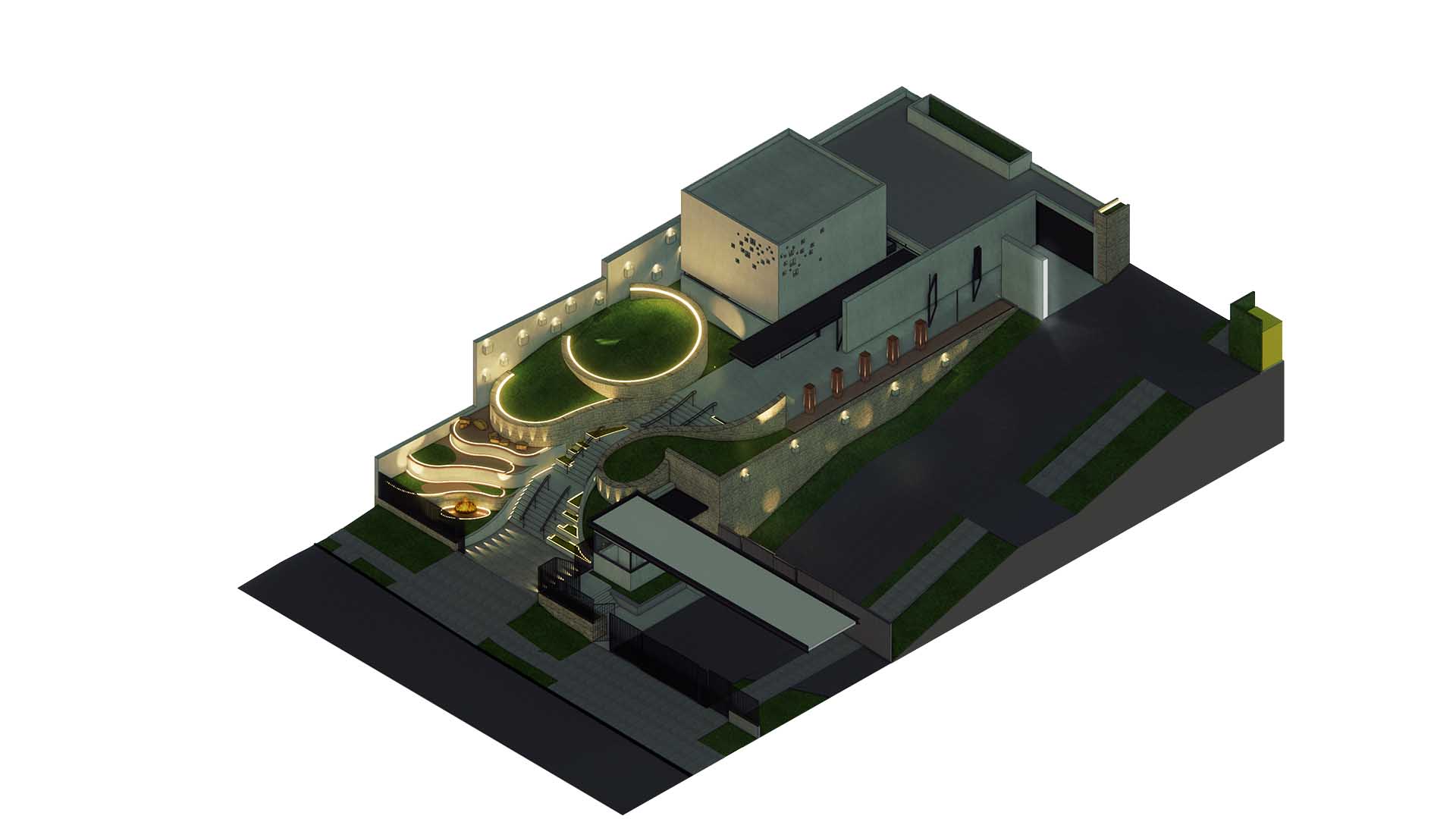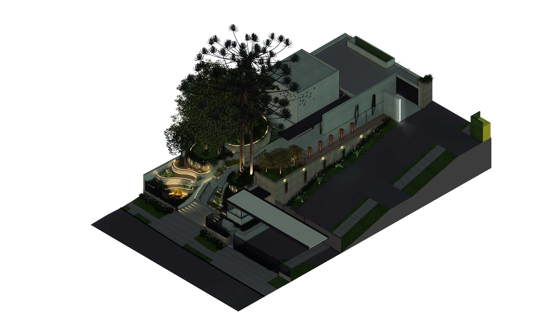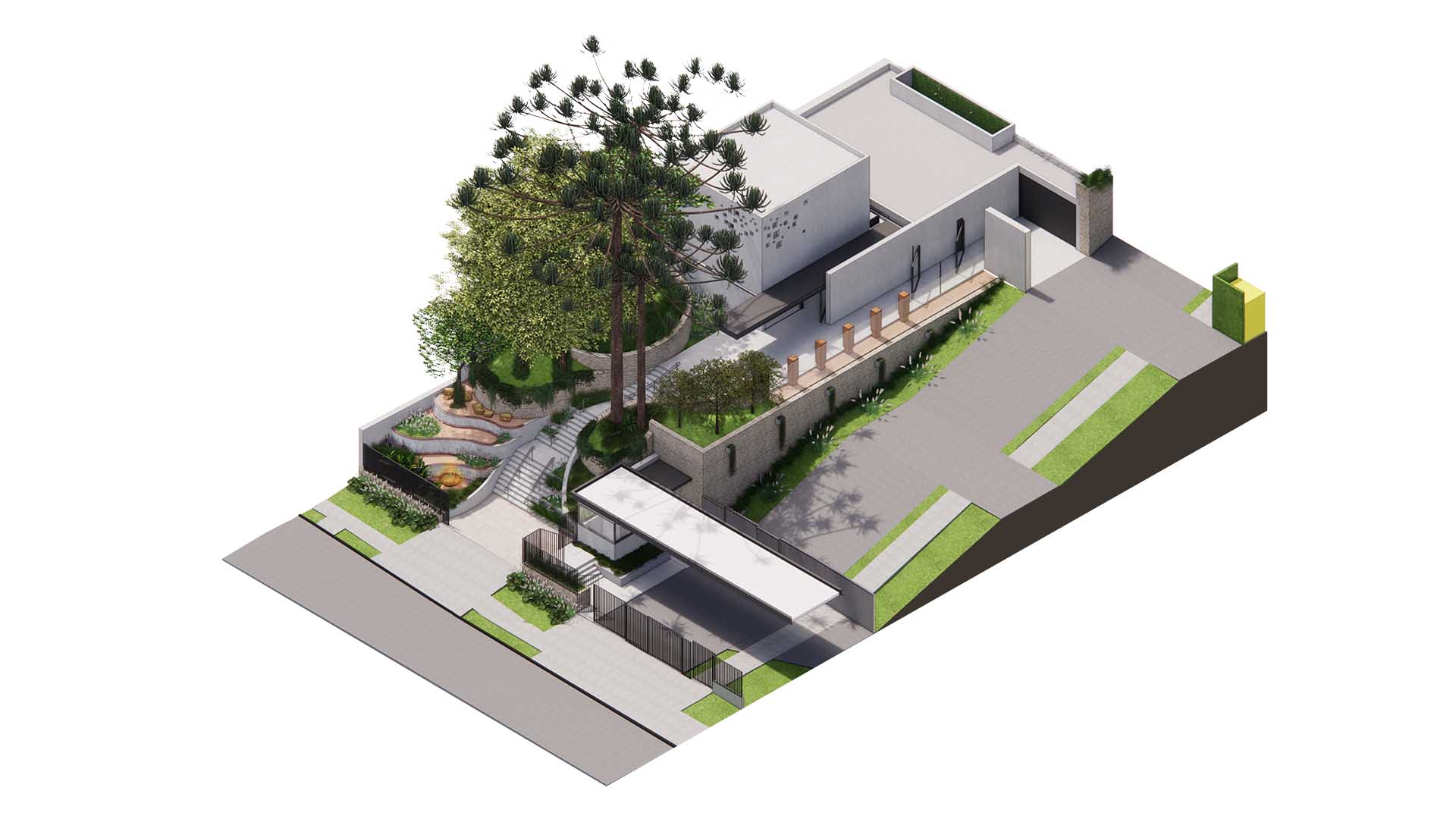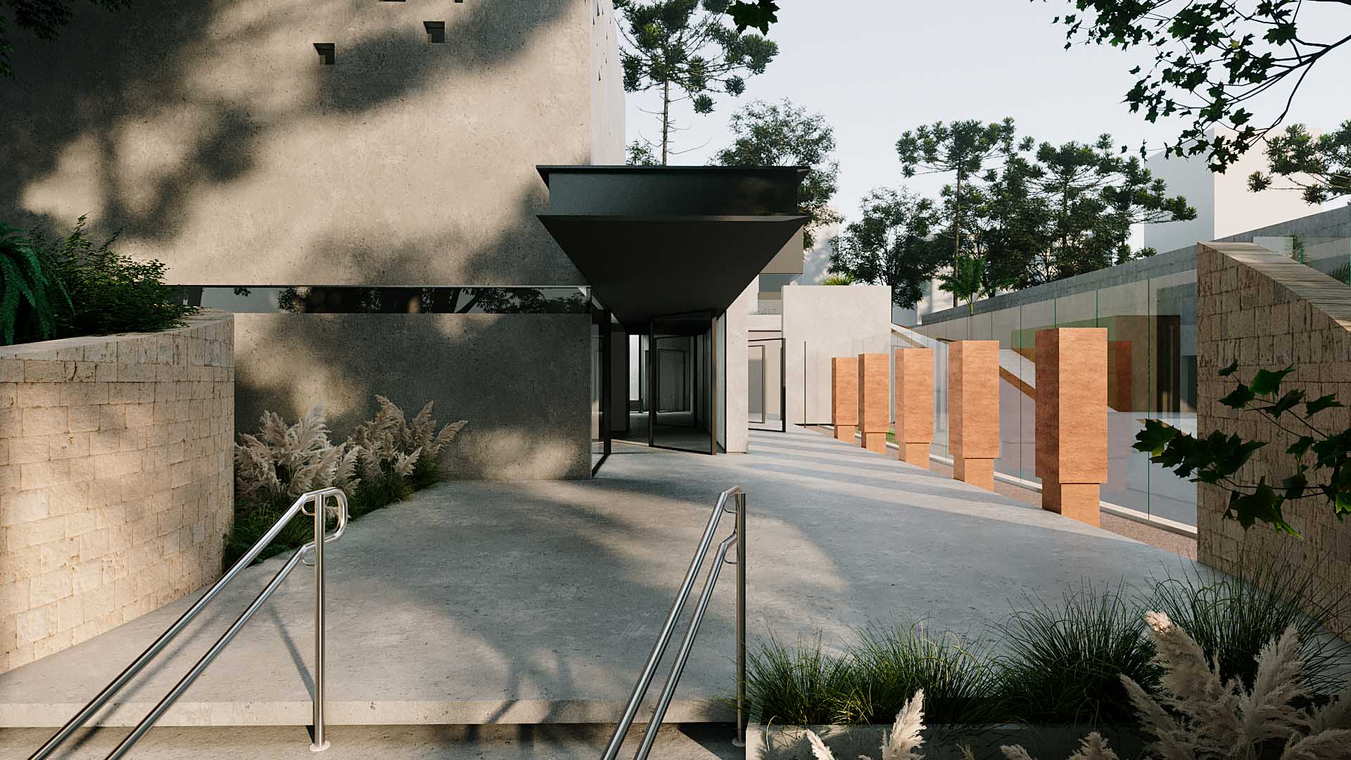 Localizado no Bom retiro, em Curitiba, o projeto paisagístico da Capela Morturária judaica parte da premissa de que a paisagem deve oferecer acolhimento, introspecção e espiritualidade. Este projeto é uma síntese de símbolos e experiências: pedra e luz, água e vegetação, silêncio e memória. Inspirado nas referências de Israel e no imaginário do Jardim do Éden, o projeto constrói um espaço de acolhimento e introspecção, onde a paisagem é mediadora entre o sagrado e o humano.
