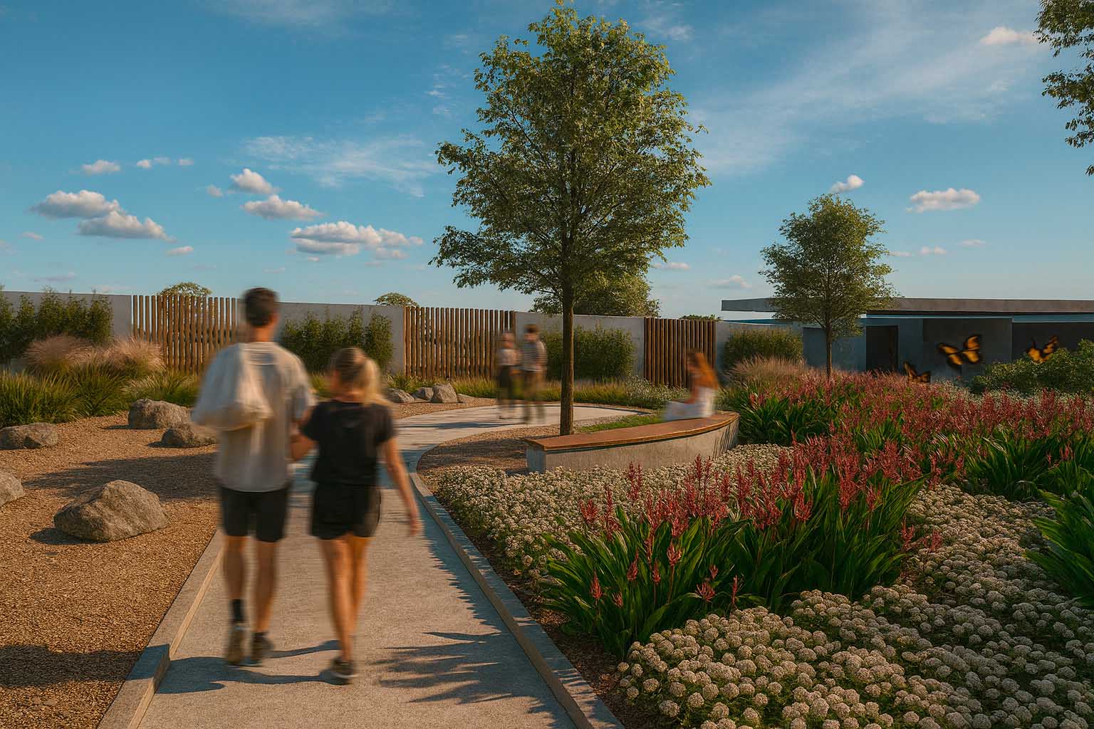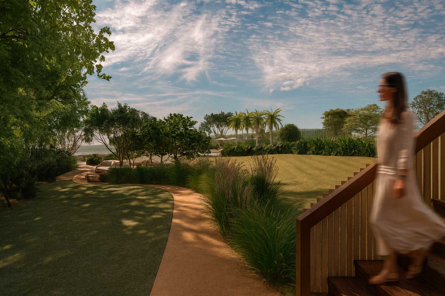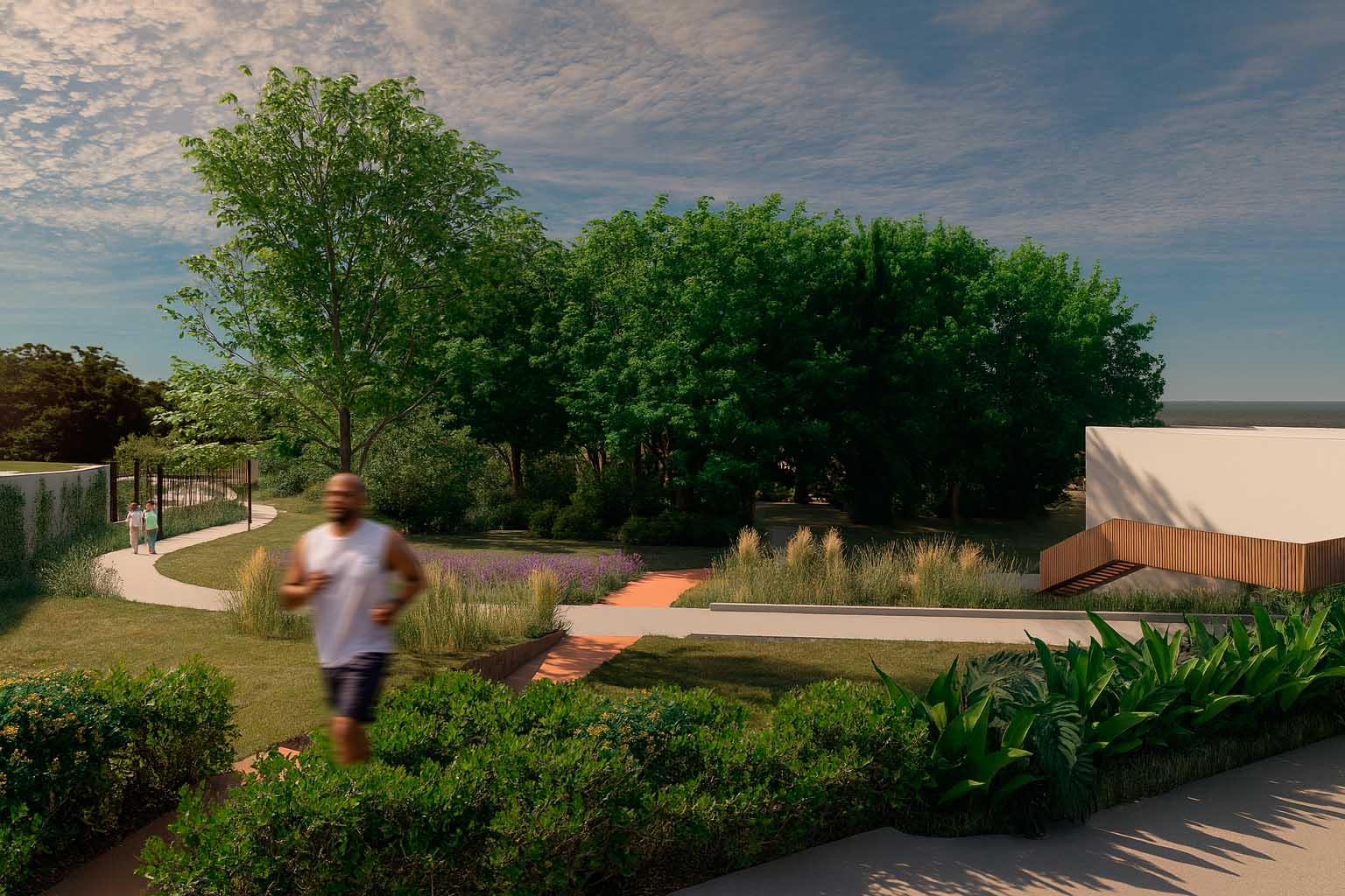 Caminhos sinuosos convidam a parar, observar, enquadrar paisagens, ouvir os sons do ambiente e experimentar a reapropriação da relação com a terra. Assim, o projeto transcende a função de paisagem construída e se torna um refúgio cotidiano, onde cada detalhe desperta a sensação de pertencimento ao natural, calma e reencontro com sua própria essência.
