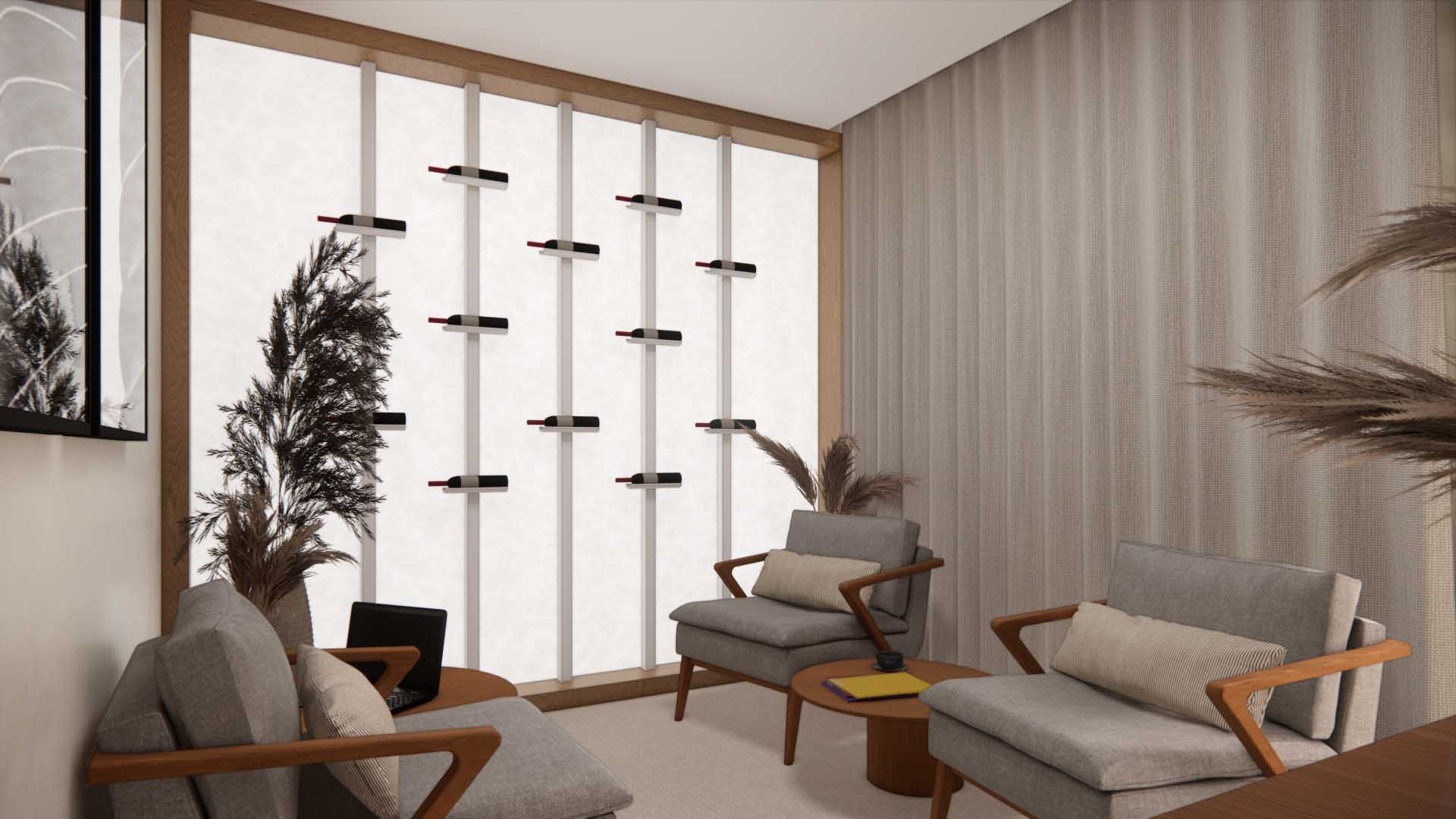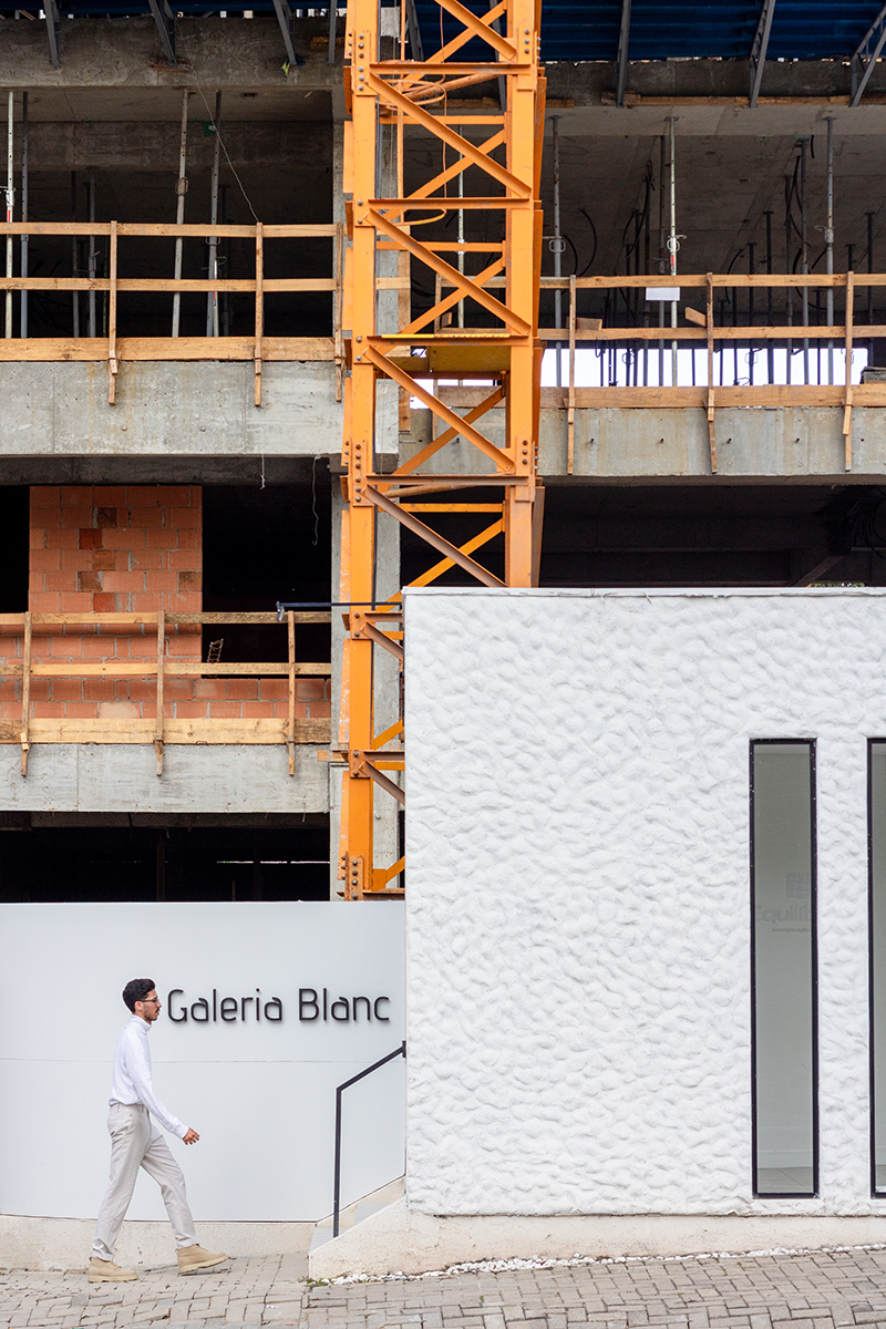 Mais do que um espaço de venda, a Galeria Blanc é uma experiência: é o primeiro contato com o que será viver no Blanc de Rouge, um prelúdio sensorial do edifício que será a referência. A inspiração também vem das vinícolas ao redor do mundo. O projeto dialoga com a tradição do vinho e a identidade da Equilíbrio, traduzindo esses elementos de maneira minimalista, moderna e elegante, sem caricaturas.