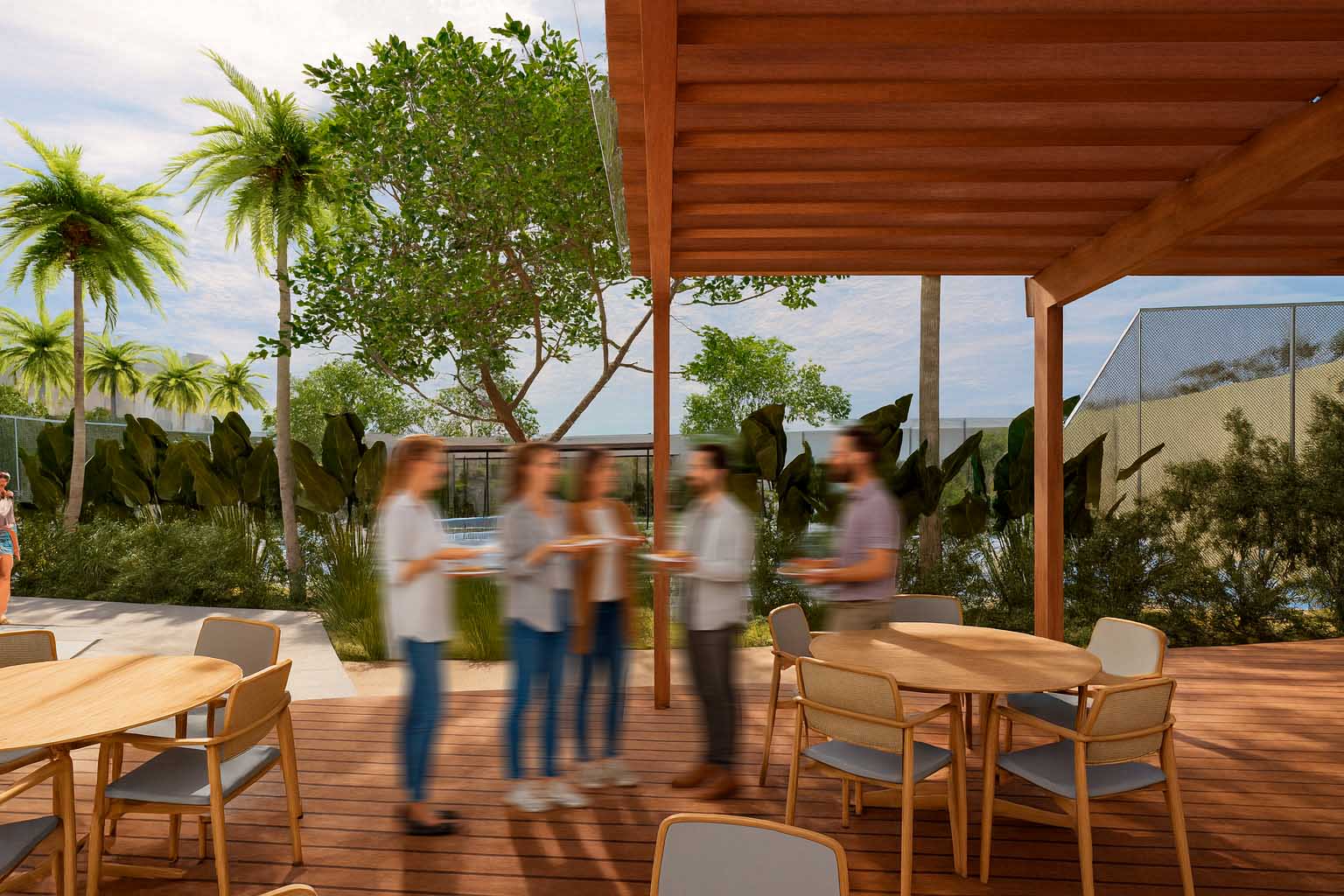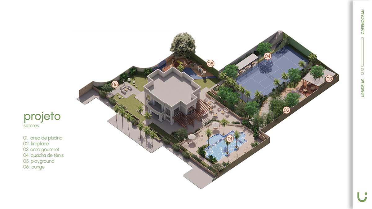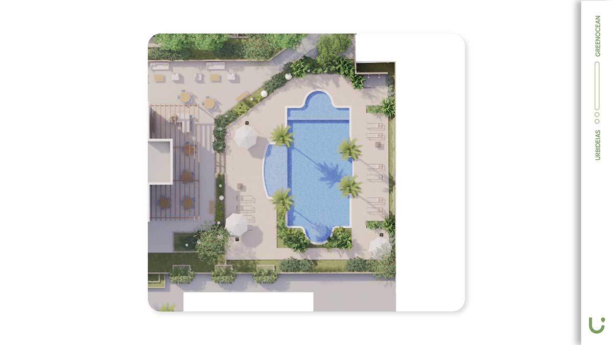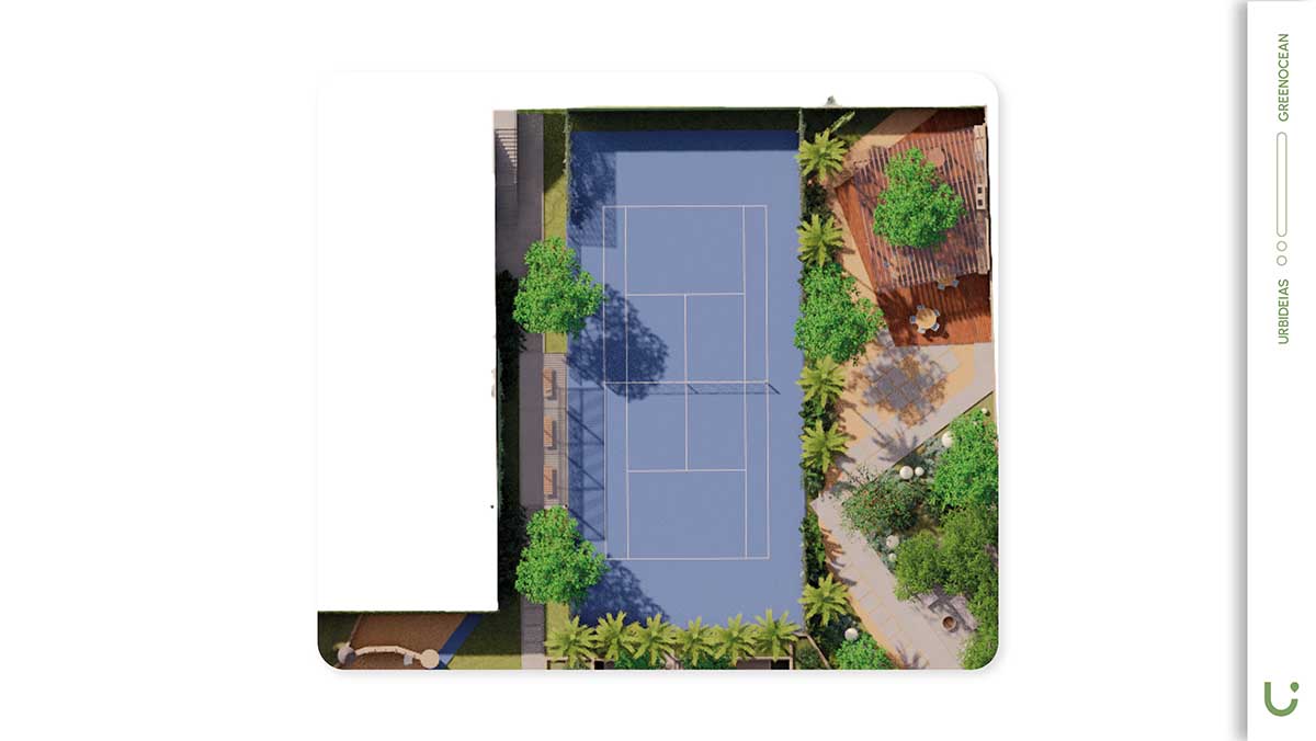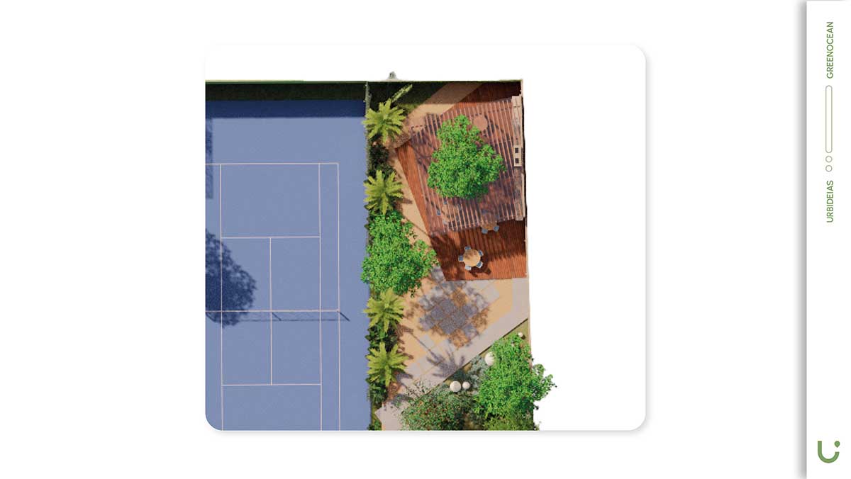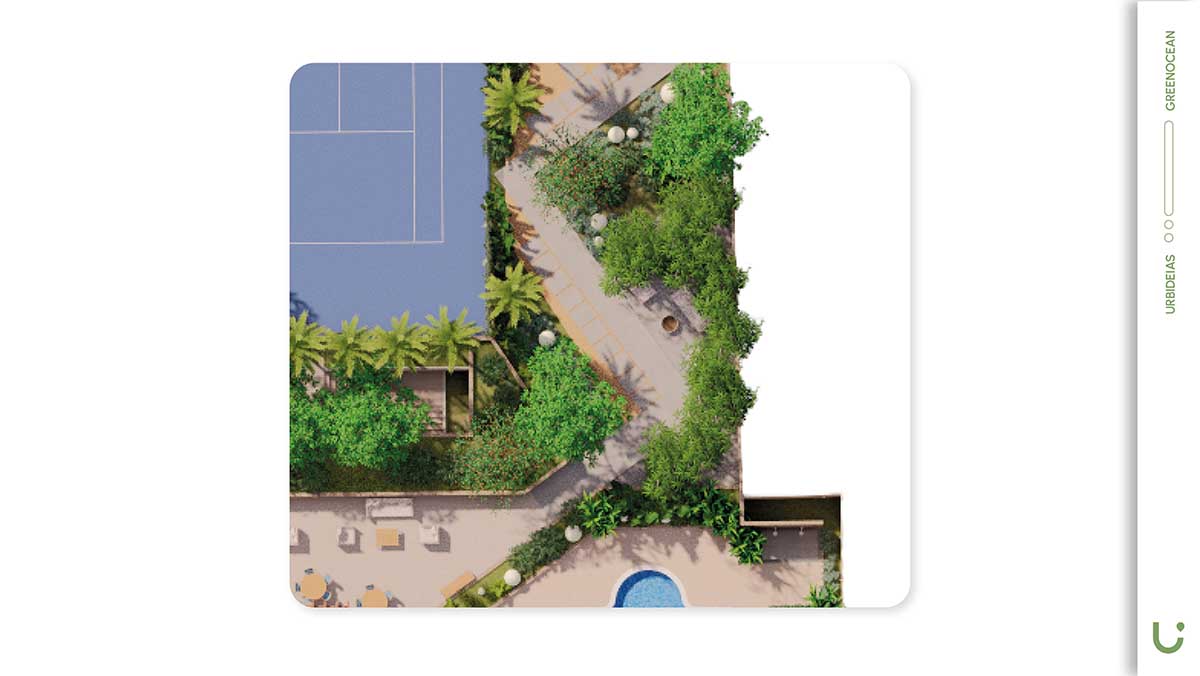 Com isso, o Green Ocean estruturou um conjunto de espaços pensados para lazer, bem-estar e convivência, como piscina, bar, lounge bar, playlandscape, sport bar, quadra de tênis, fireplace, horta e espaço gourmet.