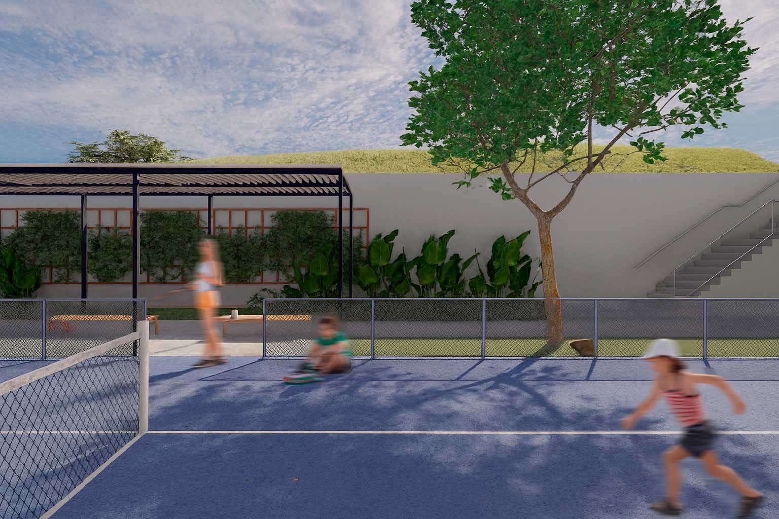 A Urbideias também foi responsável pela implantação das árvores, divisas de lote e pavimentação, estruturando percursos mais fluidos e caminháveis e promovendo uma maior eficiência ecossistêmica em todo o conjunto.