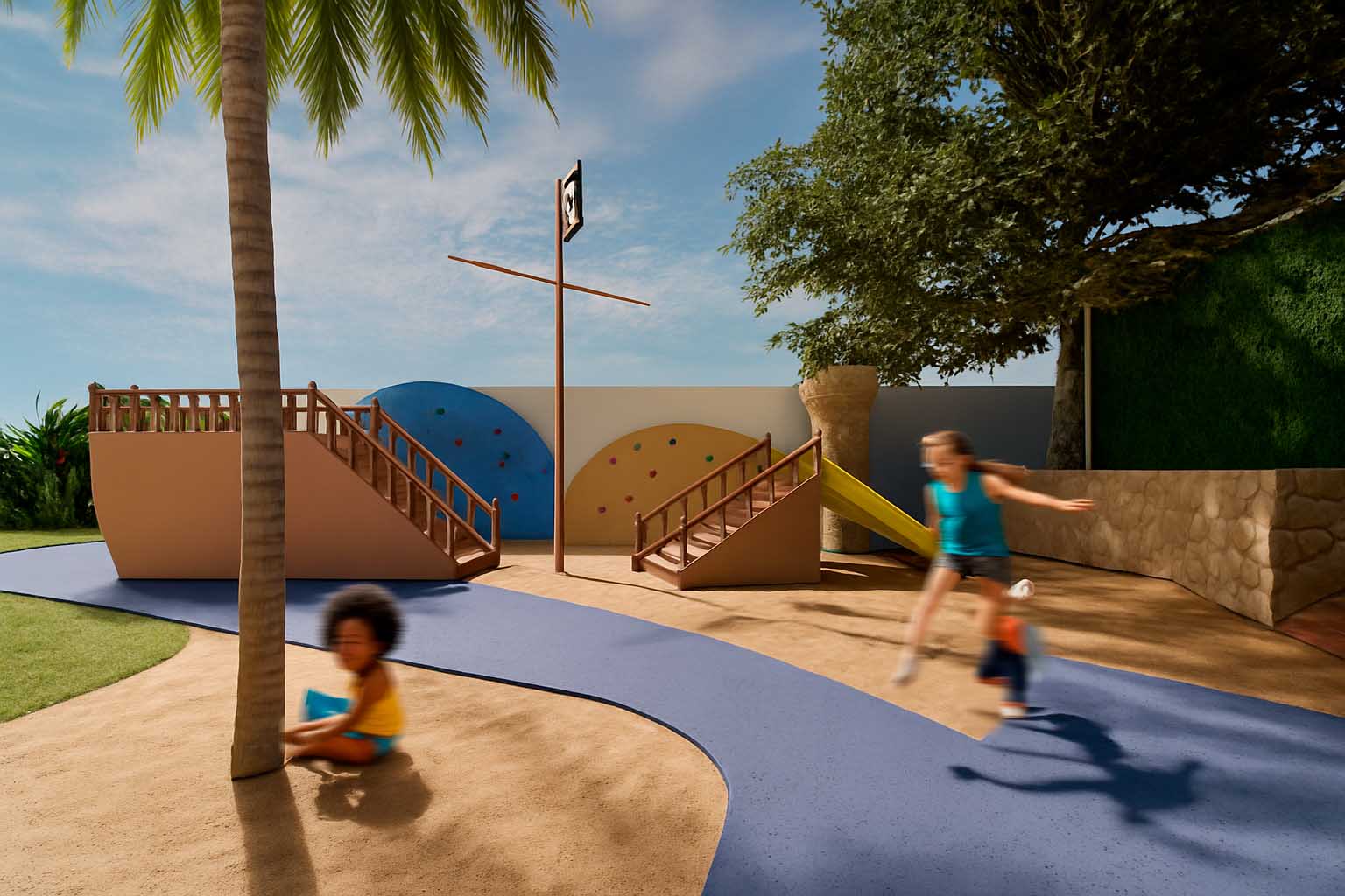 O conceito foi inspirado na releitura da zona costeira, compreendida como território sensível e frágil do ponto de vista ecossistêmico, resultado da interação entre água, terra e ar. Essa essência norteou as diretrizes do partido formal, que se baseou em um paisagismo naturalista, no uso de materiais e texturas naturais e em uma relação estreita com o ecossistema tropical, criando dentro do condomínio uma verdadeira pré-experiência da praia.