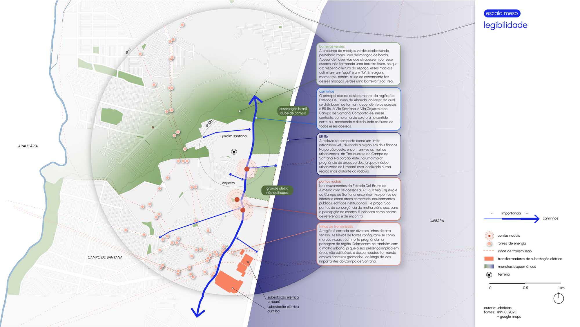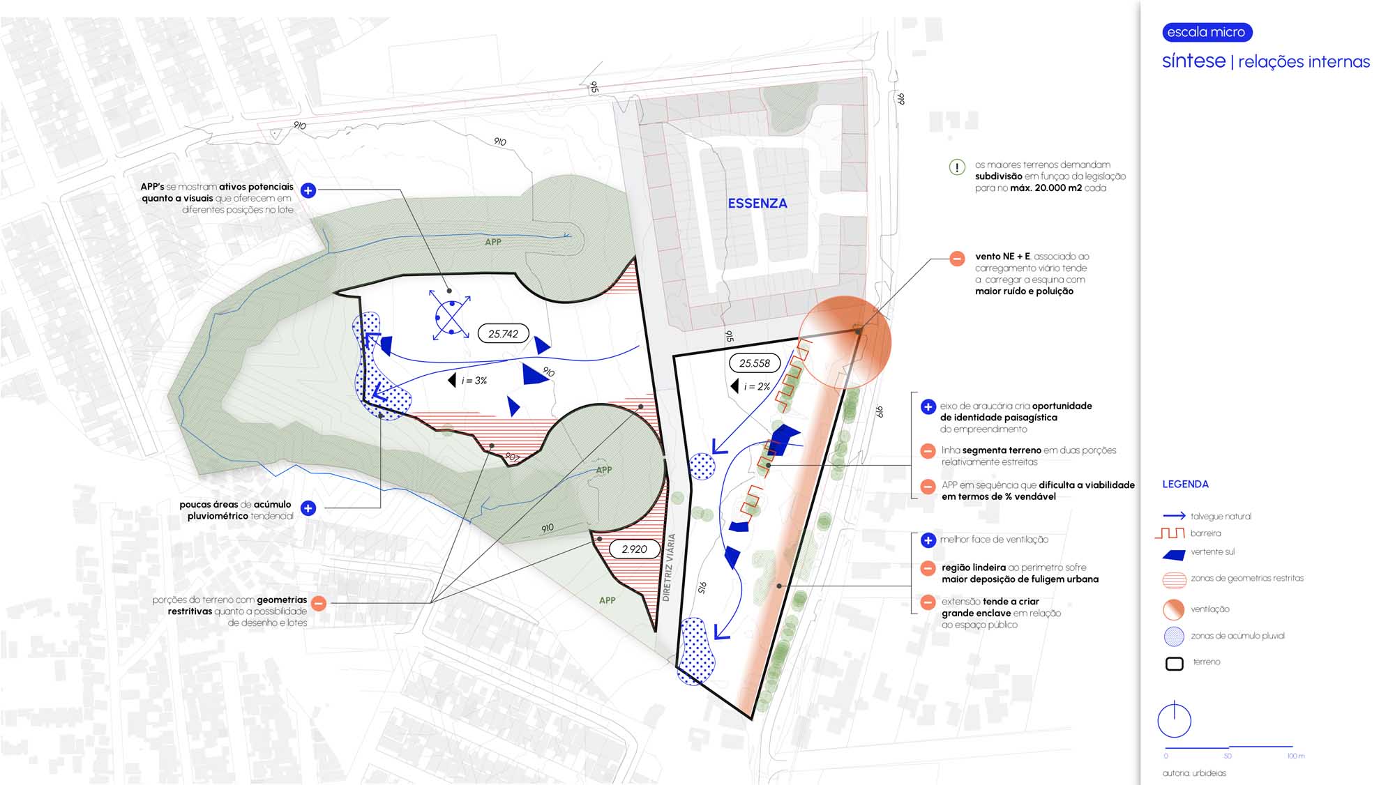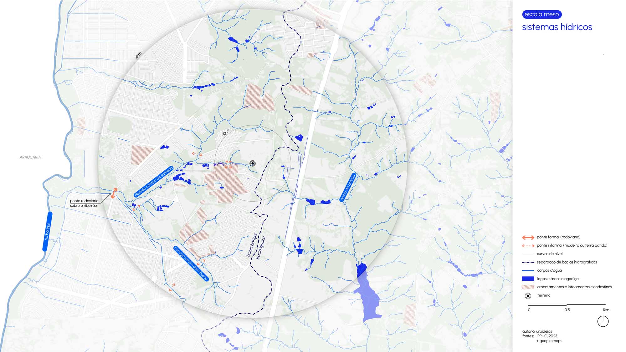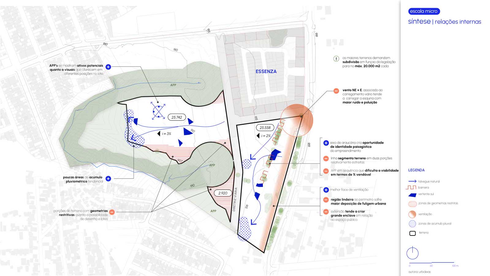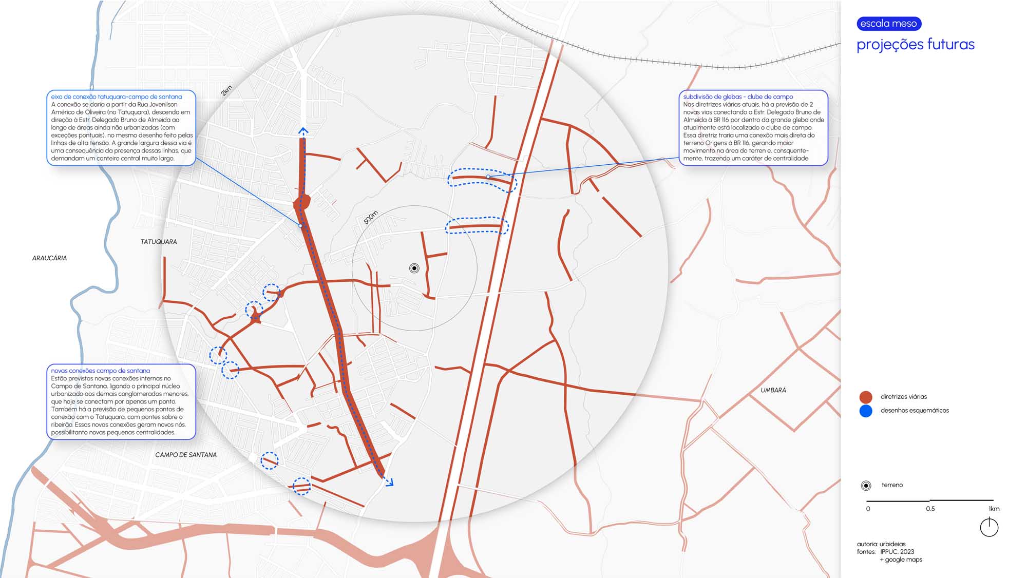 Por fim, a paisagem natural e os recursos ambientais são tratados não como limites, mas como elementos centrais do projeto. A valorização das áreas de preservação, a integração com as linhas de araucária e a criação de áreas de respiro qualificam o tecido urbano, ampliando a qualidade ambiental e consolidando um espaço que alia urbanidade e equilíbrio com o suporte natural.
